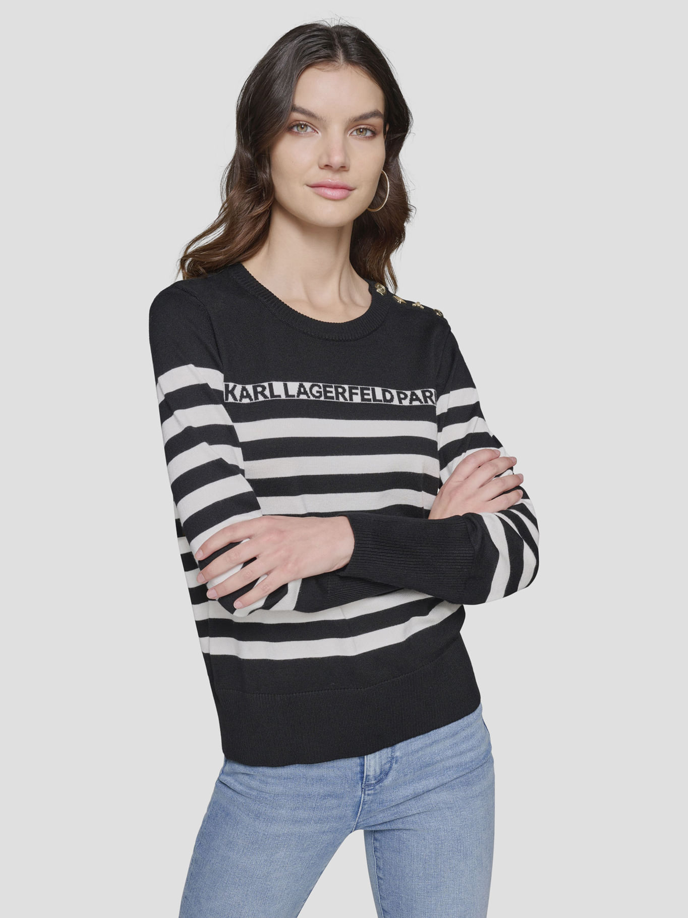 Sweater de rayas con broches